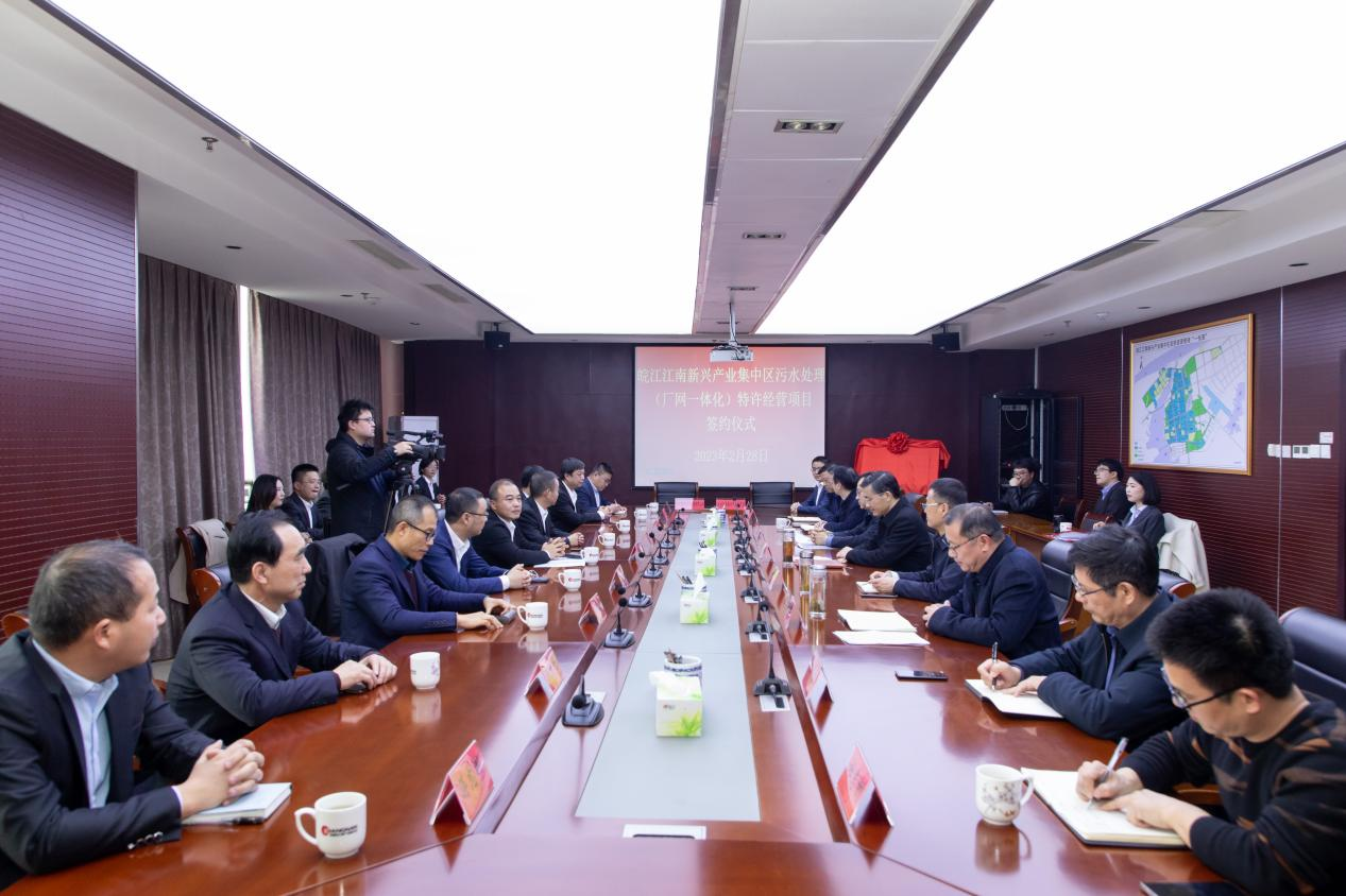 2月28日下午,皖江江南新興產業(yè)集中區(qū)污水處理(廠網一體化)特許經營項目簽約儀式在池州皖南江南新興產業(yè)集中區(qū)管委會成功舉行。池州市副市長胡軍保,集中區(qū)黨工......
